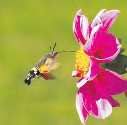lich Macroglossum stellatarum –gehört zu den Schwärmern, einer Gruppe eigentlich nachtaktiver Schmetterlinge. Es fliegt aber auch tagsüber vor allem Blüten mit langem Kelch an, weil es da den Vorteil seines gut drei Zentimeter langen Saugrüssels gegenüber kurzrüssligen Insekten am besten ausspielen kann. Gerne kommen die Taubenschwänzchen in Gärten, wo sie an Geranien, an Lichtnelken, Phlox