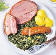 Dohrmanns Grünkohlplatte lecker und herzhaft mit Pinkel, Kochwurst, Kasseler und Bauchspeck dazu Petersilienkartoffeln