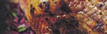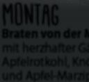 Braten von der Martinsgans mit herzhafter Gänsesauce, Apfelrotkohl, Knödeln und Apfel-Marzipan-Spalten