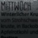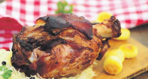Winterlicher Krustenbraten vom Strohschwein mit Honigkruste, in Backobstsauce dazu Apfelrotkohl und Kartoffelklöße Portion 8,90 €