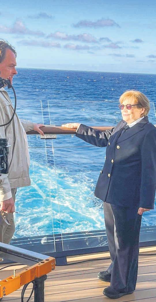 VEGESACK – Vor gut einem Jahr ist der Kriminalroman „Mord auf hoher See“ als dritter Teil der Miss-Merkel-Reihe aus der Feder des Bremer Autors David Safier erschienen. Von Anfang Januar bis Anfang Februar fanden dazu auf dem Tui Cruises Kreuzfahrtschiff „Mein Schiff 5“ die Dreharbeiten statt, denn das Werk wird verfilmt. Die Hauptrolle der Miss Merkel wird erneut von Katharina Thalbach dargestellt – und zwei Vegesacker waren hautnah dabei. Vor einiger Zeit hatten Petra und Thorsten Michaelis eine Kanaren-Rundfahrt gebucht. Vom Reiseveranstalter erfuhr das Paar, dass es keine gewöhnliche Reise wäre, denn auf „Mein Schiff 5“ würden besagte Dreharbeiten stattfinden. An Bord wurden der Inhaber von Lederwaren Michaelis und seine Frau dann gefragt, ob sie als Komparsen mitwirken würden, und beide sagten gerne zu. Die Vegesacker wurden zum Champagnertreff auf dem Kreuzfahrtschiff gebeten und dort sei ihnen alles Weitere erklärt worden. „Über den Inhalt dürfen wir nichts verraten“, berichtet Thorsten Michaelis.
