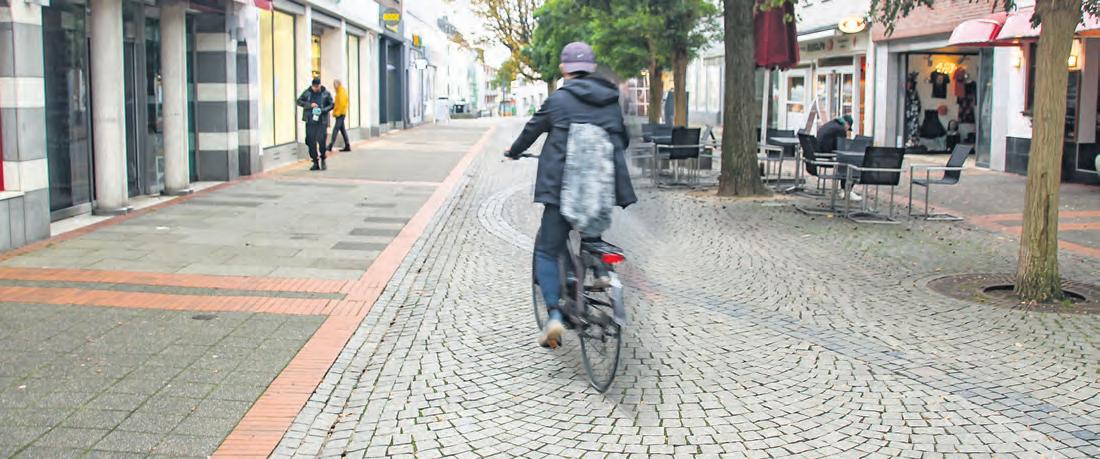 VEGESACK – Radfahrer oder sogar Fahrer auf E-Scootern werden in der Vegesacker Fußgängerzone nicht selten als Ärgernis empfunden – vor allem tagsüber.