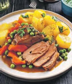 Herzhafter Zwiebelbraten vom Strohschwein mit Schmorzwiebeln, Weißkohl-Gemüse und Petersilienkartoffeln