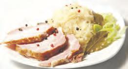 Gebratener Fleischkäse mit Spiegelei, hausgemachtem Kartoffelstampf, Sauerkraut und Bratensauce Portion 8,40 €