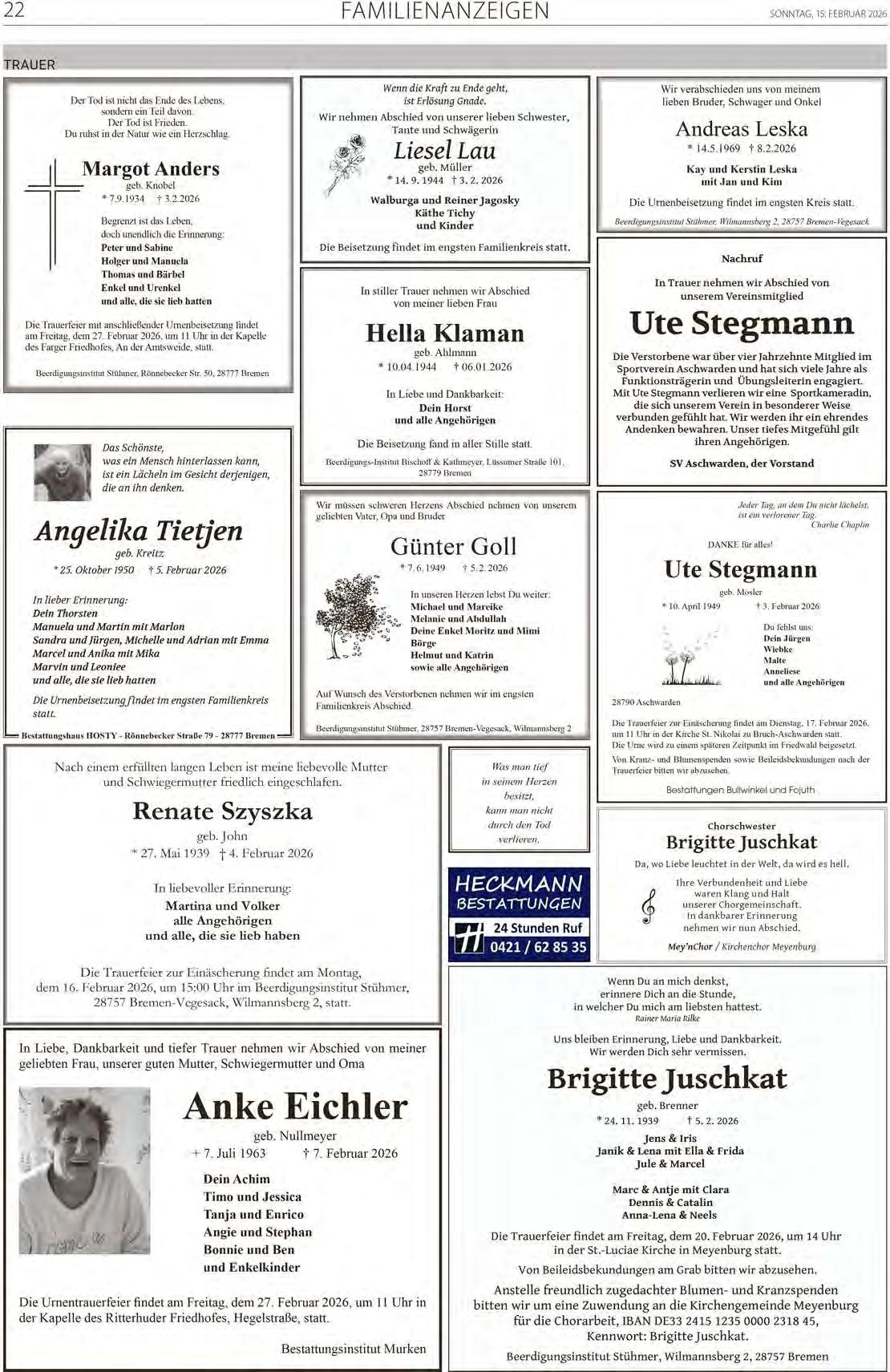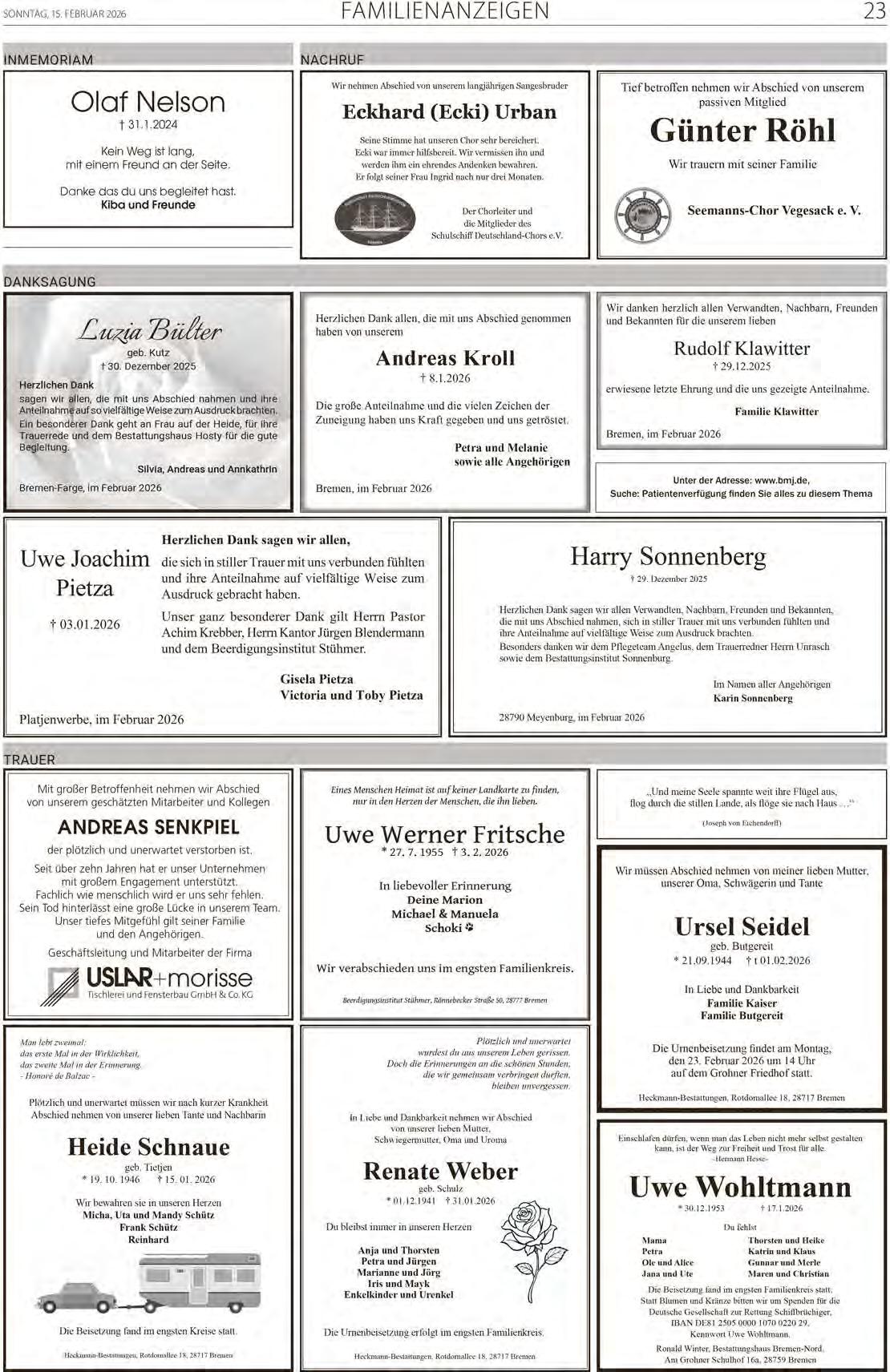 SONNTAG, 15. FEBRUAR 2026 Aus Bremen. Für Bremen. Für dich.
