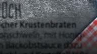 Winterlicher Krustenbraten vom Strohschwein, mit Honigkruste, in Backobstsauce dazu Apfelrotkohl und Kartoffelklöße Portion 8,60 €