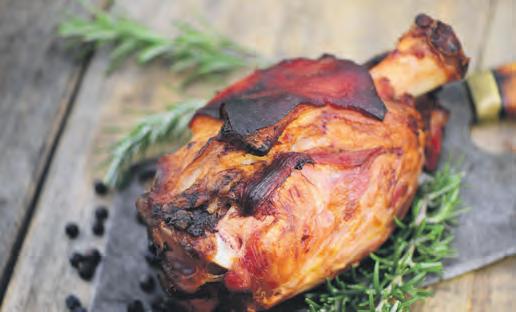 unsere saftiger Schinkenkrustenbraten im Heubett gegrillt