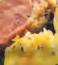 Schweinerücken-Steak „Hawaii“ mit Ananas, Pfirsich und Käse überbacken auf einer BernaiseSauce, dazu Erbsen und Reis