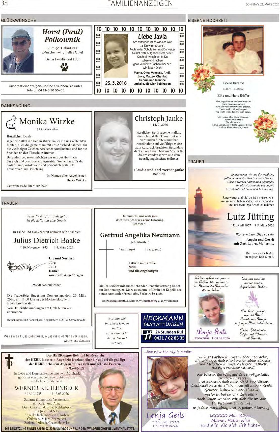 Raimund Mecke, Kaufmann aus Blumenthal, über die Stellenbesetzung