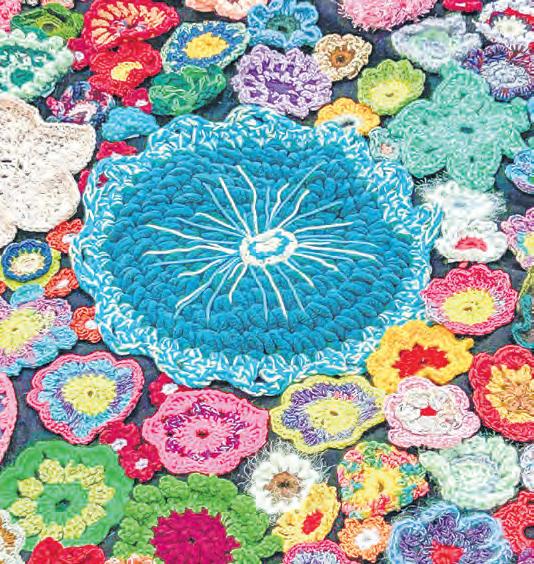 BLUMENTHAL – Im Nunatak leuchten noch bis Ende März eindrucksvolle Blütenteppiche, die im Rahmen des Projektes „Häkeln gegen den Ökozid“ der Initiative ARTagainstECOCIDE entstanden sind. Die Initiative setzt sich für Biodiversität und für ein Gesetz ein, das die Zerstörung von Ökosystemen endlich als Verbrechen anerkennt. Wir verabschieden die schöne Ausstellung am Dienstag, 31. März, mit einem letzten gemeinsamen Workshop im Nunatak. Ab 16 Uhr können alle Interessierten bei Kaffee und Tee noch einmal die Häkelnadel schwingen, bevor wir die Teppiche mit Ulrike Hübner von der Initiative ARTagainstECOCIDE entlassen. Im Mai reisen die Blütenteppiche nach Berlin, wo sie vereint mit Blütenteppichen aus ganz Deutschland als buntes Zeichen für den Erhalt unserer Natur vor dem Reichstag ausgerollt werden. f r Noch bis zum 31. März können die „Blütenteppiche“ im Nunatak besichtigt werden.