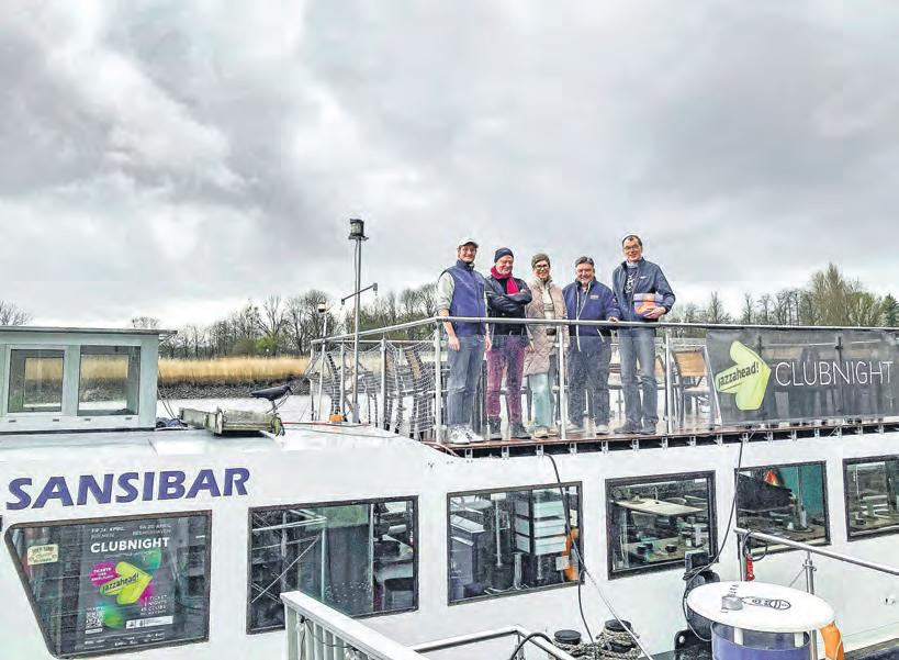 Erstmals ist die MS Sansibar mit dabei. Hier trafen sich vorab zum Gespräch die Organisatoren Jakob Fraisse, Martin Zemke, Elvira Krol, Uwe Schröter und Jürgen Möller (von links). Infos gibt es unter www. der-bremer-norden.de/events/jazzahead-clubnight-bremen-nord/ und jazzahead.de. Foto: as
