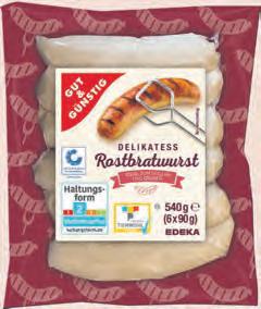 Dallmayr Classic gemahlen, versch. Sorten 1kg = 9,98 500g Packung 4 99 1 79 Erasco Eintöpfe oder Suppen versch. Sorten 1l/kg = 2,24/2,29 800/780g Dose Dr. Oetker Knorr Sauce Hollandaise versch. Sorten 1l = 3,16 250ml Packung 0 79 Maretti BruschetteChips versch. Sorten 1kg = 6,60 150g Beutel 0 99 2 22 Land-Brot oder Mehrkorn 1kg = 8,88/8,07 250/275g Beutel Henglein Frischer Hefeteig o. Pizzateig Grundpreis 450/380g Packung 1 79 Lorenz Naturals Kartoffelchips aus rein natürlichen Zutaten, versch. Sorten 1kg = 13,88/11,68 80/95g Beutel 1 11 Krüger Family Cappuccino versch. Sorten 1kg = 4,58 500g Beutel 2 29 3 99 Tassimo oder Jacobs Kaffeekapseln versch. Sorten, 20/16/8er Packung Schär MeisterbäckersBrot versch. Sorten 1kg = 6,73/6,34 330/350g Beutel 2 22 Katjes Family Fruchtgummi oder Lakritz, versch. Sorten 1kg = 2,87 275g Beutel 0 79 Storck Knoppers Riegel versch. Sorten 1kg = 7,45 5x40g = 200g Packung 1 49 Thiele Tee Broken Silber 1kg = 17,98 500g Packung 8 99 Cupper Bio-Teespezialitäten 20 Aufgussbeutel, versch. Sorten Packung 1 99 Friebel Rostbratwurst versch. Sorten 1kg = 7,98/8,87 500/450g Packung 3 99 Heinz Mayonnaise oder Ketchup versch. Sorten 1l = 4,98/4,02/3,98 400/495/500ml Flasche 1 99 EDEKA Kräuter- oder Knoblauchbutter 1kg = 6,90 100g Stück 0 69 Bonduelle Goldmais 1kg = 2,97 300g Dose 0 89 GUT&GÜNSTIG Feinkostsaucen versch. Sorten 1l = 3,16 250ml Flasche 0 79 GUT&GÜNSTIG Milchbrötchen mit 20% Vollmilch 1kg = 4,03 8 Stück = 320g Beutel 1 29 GUT&GÜNSTIG Kartoffelsalat versch. Sorten 1kg Becher 1 89 GUT&GÜNSTIG DelikatessRostbratwurst 1kg = 5,54 6x90g = 540g Packung 2 99 Jetzt ist Grillzeit! 1 69 Dallmayr Kaffeepads versch. Sorten 16er Beutel Coffee B Kaffeebälle oder Bio-Kaffeebälle für Coffee B-Kaffeemaschinen, versch. Sorten 9er Packung 2 99 CoffeeB-GlobeKaffeemaschine Einzelportionensystem, mit innovativer Brühtechnologie, White/Black Stück 99 99 NEU IM SORTIMENT! Wiesenhof Bruzzzler versch. Sorten 1kg = 9,98/11,40 400/350g Packung 3 99