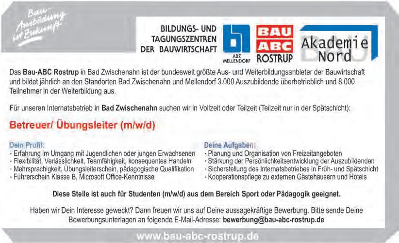 Anzeige Anzeige Fahrschule Ohsmer GbR Delmenhorst Ganderkesee-Bookholzberg Tel. 04221 - 187 66 www.Ohsmer.de Lkw-Weiterbildung Modul 1 – 5: 28.08.2023 Beschleunigte Grundqualifikation 04.09.2023 www.wako.de Autohaus WAKO GmbH | 27755 Delmenhorst | Seestraße 1 | +49 (0)4221 9229– 0 Service