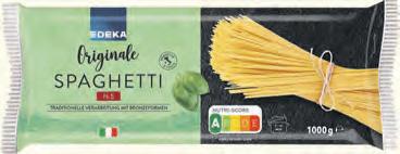 Heinz Mayonnaise oder Ketchup versch. Sorten 1l = 3,73/3,012,98 400/495/500ml Flasche 1 49 EDEKA BIO Apfelmus ohne Zuckerzusatz 1kg = 2,14 360g Glas 0 77 Thomy Mayonnaise oder Remoulade 82/80% Fett 1l = 7,45 200ml Tube 1 49 EDEKA BIO Kokosnussmilch 1l = 2,78 400ml Dose 1 11 1 29 EDEKA Baguetterie Olive oder Zwiebel 1kg = 4,30 300g Stück EDEKA Bio My Veggie FalafelMischung aus Kichererbsen, perfekt für orientalische Gerichte oder Wraps 1kg = 5,66 175g Beutel 0 99 0 59 Maggi Würzpaste versch. Sorten 1kg = 9,08 65g Beutel 1 49 Lorenz Saltletts Mini-Brezel, Laugen-, Pausencracker, Mini-Bagel 1kg = 9,93 150g Beutel 2 22 Nestlé KitKat-Mini-Mix 1kg = 11,25 197,4g Beutel Melitta Bella Crema ganze Bohnen, ideal für Kaffeevollautomaten, versch. Sorten 1000g Beutel 9 99 Lavazza Kaffeepads oder -kapseln versch. Sorten, Kaffeekapseln für die meisten Nespresso*Kaffeemaschinen 10/18er Packung/Beutel 1 99 Manner Neapolitaner o. Schnitten versch. Sorten 1kg = 7,40/5,55 300/400g Beutel 2 22 Oreo O‘s Cereal Cerealien mit Schokound Vanillegeschmack 1kg = 9,51 350g Packung 3 33 Nescafé frappé Eiskaffee 1kg = 7,24 275g Dose 1 99 Appel Herings lets in versch. Cremes 1kg = 5,55 200g Dose 1 11 2 79 Garden Gourmet Burger, Hack, Bratwurst oder Filet Hähnchen-Art Fleischalternativen, rein p anzlich 1kg = 15,50-12,35 180-226g Packung EDEKA Originale Penne Rigate, Fusilli, Spaghetti aus 100% hochwertigem Hartweizengrieß, versch. Ausformungen 1000g Beutel 1 99 Bauerngut Grillbratwurst ideal für Grill und Pfanne 1kg = 6,66 10x90g = 900g Packung 5 99 Milka Schokolade versch. Sorten 1kg = 7,90 100g Tafel 0 79 2 37 Milka Alpenmilch 1kg = 7,90 3x100g Tafel Nestlé Choco-CrossiesBalls, Moments versch. Sorten 1kg = 15,86/11,10 140/200g Beutel 2 22 EDEKA BIO Rote Linsen, Berglinsen, Kichererbsen 1kg = 2,58 500g Packung 1 29 EDEKA BIO Gemüsemais 1kg = 3,00 330g Dose 0 99 Oro di Parma Tomaten passiert oder stückig versch. Sorten 1kg = 2,78 400g Dose/Packung/Flasche1 11 Jacobs Krönung gemahlen oder ganze Bohnen 1kg = 9,98 500g Packung 4 99 Lieken Lieblingsbrot Dinkel Roggen/Dinkel 1kg = 4,48 400g Packung 1 79 EDEKA Originale Crema con „Aceto Balsamico di Modena I.G.P.“, das Original aus Italien 1l = 5,16 250ml Flasche 1 29