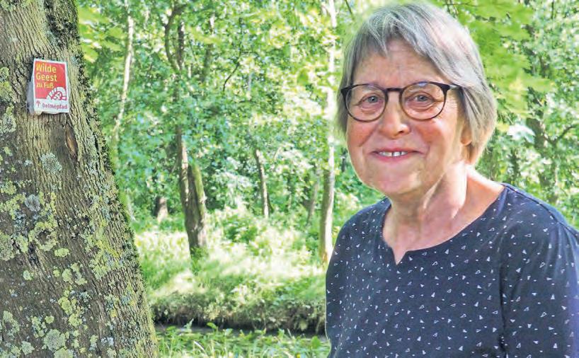 beim gemeinsamen Gang auf dem Delmepfad schnell klar. Wachendorf kennt den Weg wie ihre Westentasche. Markante Highlights wie die über 170 Meter lange hölzerne Ozeanbrücke sind bekannt. Doch die Expertin hat auch so ihre ganz eigenen Lieblingspunkte. „Richtung Prinzhöfte gibt es einen schmalen Pfad, bei dem man sich schon bücken muss. Er ist wunderschön und den hatte ich zuvor noch nie entdeckt“, verrät sie. Ebenso schwärmt sie von der Vielfalt des Delmepfads, der neben verschiedenen Waldformen auch Moore und Acker zu bieten hat. Viel zu entdecken gab es auch, als der Zweckverband vor wenigen Jahren die 20 Rundwanderwege im Naturpark installiert hat. „Ich erfuhr aus der Zeitung von dem Projekt und habe mich in einem zweitägigen Seminar zur Wegebegutachterin ausbilden lassen“, blickt Wachendorf zurück. In den Kommunen des Naturparks wurden dann Wege begutachtet, wobei die Harpstedterin mithalf und zunächst bei Twistringen eingesetzt war. „Es hieß, dass direkt vor der eigenen Haustür viele Dinge nicht so auffallen. Das kann ich nur bestätigen.“ Seit 2021 sind die Wege ausgewiesen – und seitdem kehrt Wachendorf sozusagen wieder vor der eigenen Haustür. Dort, wo ihrem engagierten, geschulten Auge nichts entgeht.