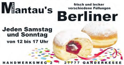 Oldenburger Str., DEL Ganderkesee Bremer Str., DEL Harpstedt 0 75 Grillkotelett/ Frisches Kotelett am Knochen, natur oder grillfertig zubereitet 100g 0 85 Bauerngulasch mager und zart, aus dem Schinken geschnitten, küchenfertig zubereitet 100g 0 89 Fleischsalat mit oder ohne Kräutern, mit über 50% Fleischwursteinlage 100g 1 39 Unsere Leberwurst verschieden sortiert 100g Nur Montag & Diensta g! 6 99 Gehacktes aus Schwein und Rind, laufend frisch 1kg Ab Donnerstag! 0 79 Kaminbraten aus dem Nacken, gewürzt, küchenfertig zubereitet 100g 0 99 Aus der SB-Theke: Unsere Currywurst aus eigener Herstellung, 3er oder 4er Pakete 100g 1 25 Putenschlemmersteak Ceylon aus der Brust geschnitten, mit der feinen fruchtigen Schärfe und einem Hauch von Curry 100g 1 25 Pollo Fino gewürzt, mit Haut, super saftig, für Grill, Pfanne und Backofen 100g 0 95 Unser Hackepeter mager und würzig, extra fein 100g Nur solange der Vorrat reicht. Irrtum vorbehalten. Holländischer Schnittkäse Gouda, jung 48% Fett i. Tr. 1kg = 8,90 100g 0 89 Kabeljauloins 1kg = 29,90 100g 2 99 Aus eigener Herstellung Fischspieß LimetteSpicy-Lemon 1kg = 22,90 100g 2 29 BienenstichPlunder* 1kg = 8,78 90g Stück 0 79 Matjes in Honig-Senf-Sauce 1kg = 16,90 100g 1 69 Flammlachs mit Haut, gagart und mariniert 1kg = 39,90 100g 3 99 1 49 Aus eigener Herstellung: Mozzarella-Salat mit Tomaten 1kg = 14,90 100g 1 69 Gegrillte Paprika abgezogen und flambiert, mit Knoblauch 1kg = 16,90 100g 1 89 Deutscher Edelpilzkäse Bavaria Blu versch. Sorten, 60/70% Fett i. Tr. 1kg = 18,90 100g 1 99 Deutscher Weichkäse Bonifaz mit versch. Zutaten, sortiert, 70% Fett i. Tr. 1kg = 19,90 100g AUS DER SB-BACKSTATION! * nicht erhältlich in der Schönemoorer Straße