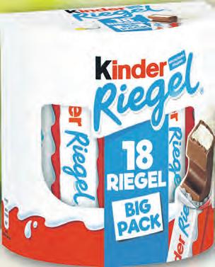 Jacobs Caffé Crema oder Barista Crema ganze Bohnen, ideal für Kaffeevollautomaten, versch. Sorten 1kg Beutel 8 99 Ferrero Duplo oder Kinderriegel Big-Pack Schokoladenriegel, einzeln verpackt 1kg = 10,64/9,23 328/378g Packung 3 49