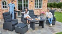 Aluminiumgestell mit Polyrattan dunkelgrau, bestehend aus 2 Loungesesseln, eine 2-sitzer Loungebank, 1 Loungetisch 130x75cm und 1 Loungehocker, inkl. Sitz- und Rückenkissen, Maße der Sitzecke: 250 x 210 cm 1.999,NUR 1.299,- GARTENMÖBELSET CORIDO 9-TEILIG bestehend aus 4 Polyrattan-Gartensesseln Corido sowie 4 Sitz- und Rückenkissen und 1 Alu-Gartentisch 180 x 100 cm mit extrem robuster Keramikplatte