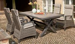 Aluminiumgestell mit Polyrattan dunkelgrau, bestehend aus 2 Loungesesseln, eine 2-sitzer Loungebank, 1 Loungetisch 130x75cm und 1 Loungehocker, inkl. Sitz- und Rückenkissen, Maße der Sitzecke: 250 x 210 cm 1.999,NUR 1.099,- GARTENMÖBELSET CORIDO 9-TEILIG bestehend aus 4 Polyrattan-Gartensesseln Corido sowie 4 Sitz- und Rückenkissen und 1 Alu-Gartentisch 180 x 100 cm mit extrem robuster Keramikplatte 2.715,NUR 1.499,GARTENMÖBELSET KERAMO MIT AUSZIEHTISCH bestehend aus 6 Verstell-Geflechtsesseln Keramo mit Gasdruckfedersystem inkl. Sitz- und Rückenkissen und 1 Alu-Ausziehtisch Keramo mit Keramikplatte 200/260 x 100 cm