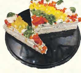 Aus eigener Herstellung: Gefüllte Brietorte mit Gärtnertopf Französischer Weichkäse, 50% mit Frischkäse(69%), Paprika und Kräutern gefüllt, 1kg = 16,90 100g 1 69