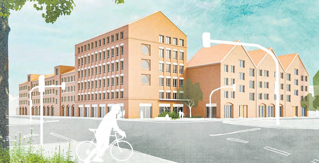 unter markante Backsteinbauten mit Satteldächern. Gewerbeflächen sind vorrangig in den Erdgeschossen vorgesehen, während obere Etagen Wohnraum und Büros bieten. Ein Teil der geplanten Grünflächen soll öffentlich zugänglich sein. Während die grundsätzliche Zustimmung im Ausschuss breit ist, wurden Fragen zur sozialen Durchmischung des Wohnangebots und zur optischen Dominanz des sechsgeschossigen Eckbaus aufgeworfen. Die endgültige Entscheidung liegt nun beim Verwaltungsausschuss. Mit einem Baubeginn ist frühestens 2026 zu rechnen, sofern das Planverfahren zügig abgeschlossen wird.