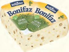 Deutscher Weichkäse Bonifaz sortiert, mit Pfeffer, Pilzen, Chili oder Knoblauch, 70% Fett i. Tr. 1kg = 15,90 100g 1 59