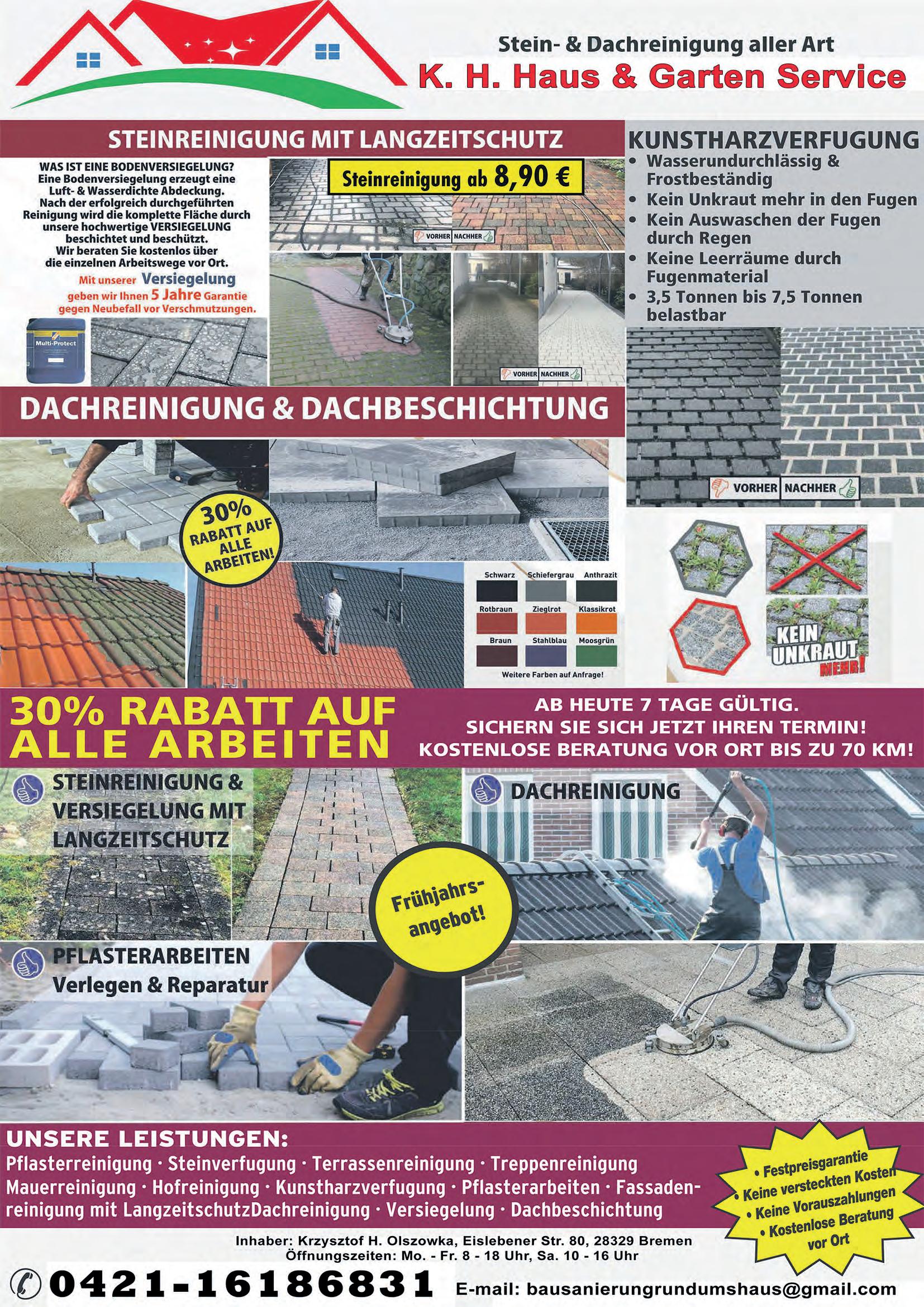 Gelernter Dachdecker erledigt sämtliche Arbeiten am Haus sowie Gehweg- u. Fassadenreinigung, Flachdachsanierung, Malerarbeiten uvm. 0160-91429866