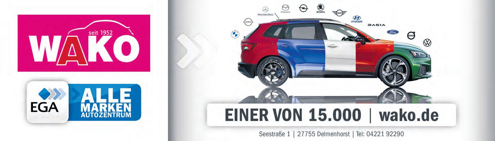 Zurzeit gelten Anzeigenpreisliste Nr. 52 vom 01. Januar 2025 und unsere darin abgedruckten AGB. Falls Sie dieses Produkt nicht mehr erhalten möchten, bitten wir Sie, einen Werbeverbotsaufkleber mit dem Zusatzhinweis „Keine kostenlosen Zeitungen“ an Ihrem Briefkasten anzubringen. Weitere Informationen finden Sie auf dem Verbraucherportal www.werbung-imbriefkasten.de Internet: www.delmereport.de Druck: DruckHaus Delmenhorst GmbH Verbreitete Auflage: 53.780 Exemplare mit WESER REPORT, HAMME REPORT und WÜMME REPORT 351.410 Exemplare