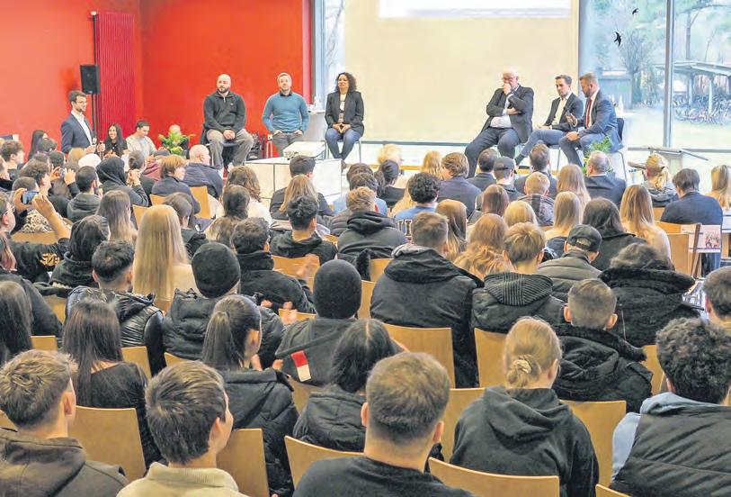 Zum ersten Mal trafen sich verschiedene politische Vertreter am Donnerstag im großen Umfang für eine Podiumsdiskussion in der Aula der Berufsbildenden Schule 1 (BBS I). Das Thema der Schüler: „Keine Rente, aber Wehrpflicht? Der neue, gerechte Generationenvertrag der Sicherheit?“. Mit dabei waren die Mitglieder des deutschen Bundestages Bastian Ernst (CDU) und Andreas Paul (AfD), als auch die Mitglieder des Landtages Deniz Kurku (SPD) und Lena Nzume (Bündnis 90/Die Grünen) sowie Dariush Hassanpour (Die Linke), Mitglied der Bremischen Bürgerschaft, und ergänzend der stellvertretende Bereichsleiter für Bildung der Oldenburgischen Industrieund Handelskammer, Ludger Wester. Über 50 Fragen wurden vorab von den Schülern eingereicht, die kritischsten davon den Politikern gestellt. Eingeleitet wurde die Veranstaltung mit einer digitalen Abstimmung der Schüler und ihrer Meinung zur freiwilligen Wehrpflicht. Dort zeigte sich eine deutliche Positionierung: Ein Großteil der Schüler würde sich nicht dazu bereit erklären, einen freiwilligen Wehrdienst zu leisten. Bei der Auswahl der Fragen spiegelte sich eine ähnliche Tendenz wieder: Wiederholt beinhalteten sie die Einschränkung der Selbstbestimmung und individuellen Freiheit.