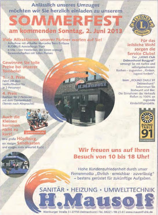 nur möglich, weil unsere vielen lokalen und nationalen Anzeigen- und Beilagenkunden unsere Dienstleistung schätzen und uns über die vielen Jahre die Treue gehalten haben. Dafür möchte ich mich im Namen des gesamten Delme-Report-Teams herzlich bedanken. Lassen Sie uns gemeinsam alles daransetzen, dass auch die kommenden Jahre so erfolgreich wie die 35 vergangenen verlaufen werden. Für heute wünsche ich Ihnen viel Spaß mit der heutigen Ausgabe. Bleiben Sie gesund und fröhlich und dem Delme Report gewogen.