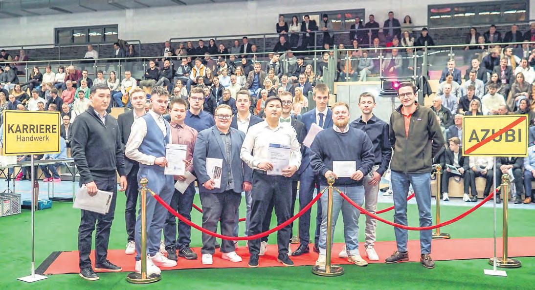Gesellenbriefe und die Präsente für die erfolgreichsten Auszubildenden wurden die sieben Besten zusätzlich mit einer Urkunde ausgezeichnet. Begrüßt wurden die zahlreichen Gäste von der Kreishandwerks-
