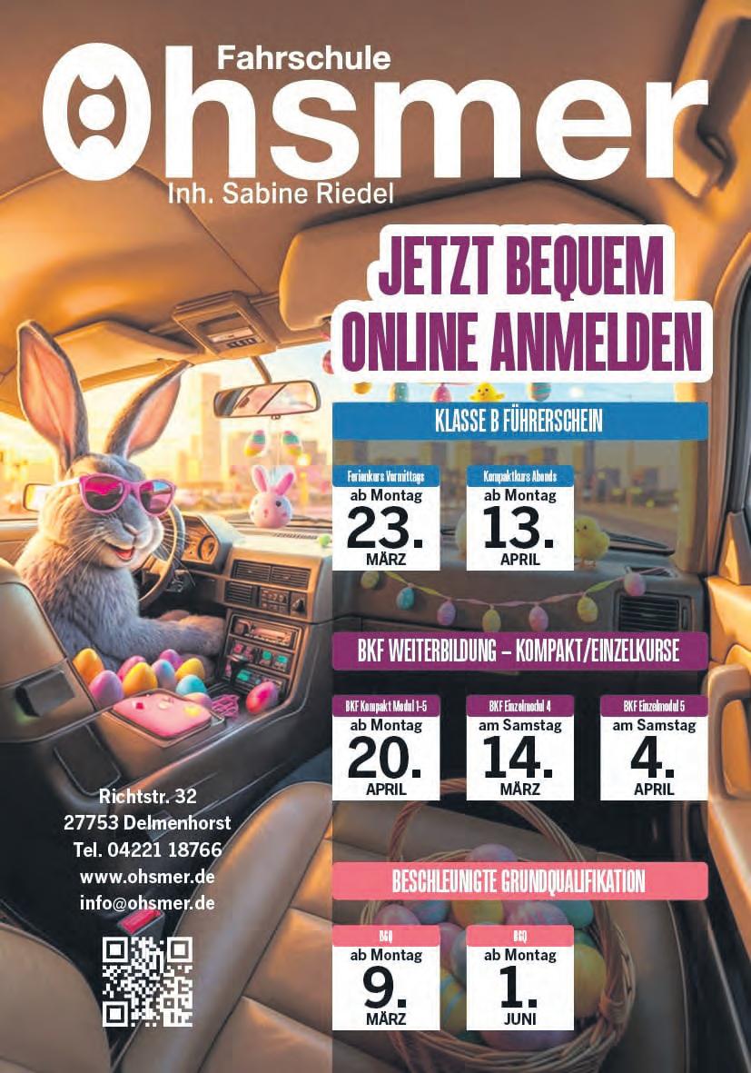 Wer Interesse hat, sendet ein Motivationsschreiben und einen kurzen Lebenslauf per EMail an bernd.entelmann@ delmenhorst.de oder per Post an die Adresse Am Turbinenhaus 10-12, 27749 Delmenhorst. Fragen werden telefonisch unter 04221 / 99 16 87 beantwortet. DR