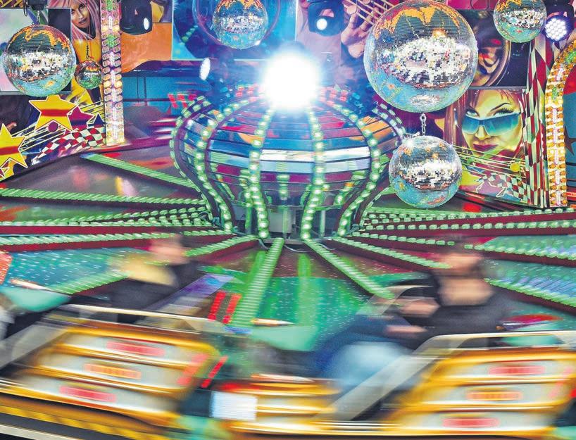 Party in Karussells, deren Fliehkräfte einen so nach außen schleudern, dass man sich automatisch näherkommt. Discokugeln glitzern im Flackerlicht. Disco, Rock und Techno locken. Foto: KW Schlie