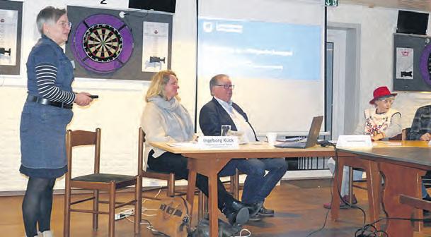 wäre der Seniorenbeirat dankbar, wo noch Sitzgelegenheiten fehlen. Im Anschluss an die Sitzung des Seniorenbeirates gab die Pflegeberaterin beim Senioren- und Pflegestützpunkt im Landkreis Osterholz, Ingeborg Kück, den Mitgliedern und Vortragsgästen umfangreiche Informationen für pflegende Angehörige. „Wir haben Pflegenotstand durch fehlende Dienstleister“, so Kück. Immer wieder würden viele Fragen zum Thema Pflegebedürftigkeit an sie herangetragen. Wer kann helfen? – heißt es häufig. Die Vortragsgäste erfuhren, dass in erster Linie die Krankenkassen, Ärzte, Pflegedienste und der Pflegestützpunkt Ansprechpartner seien. Die Beratung und Antragstellung erfolge im Pflegestützpunkt zusammen mit Tanja Ehrichs. Die Anwesenden erfuhren, dass die Krankenkassen gleichzeitig auch Pflegekassen sind.