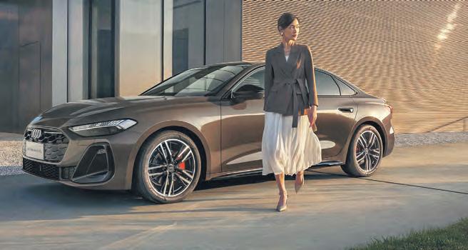 Der Audi E concept (kleines Bild) präsentiert sich als 4,87 Meter langer und 1,99 Meter breiter Sportback. Zwei EMotoren sorgen mit 570 kW und Allradantrieb quattro für herausragende Fahrdynamik. Die Tennisspielerin Zheng Qinwen, die bei den Olympischen Sommerspielen in Paris Gold gewann, wirbt als Markenbotschafterin für Audi.