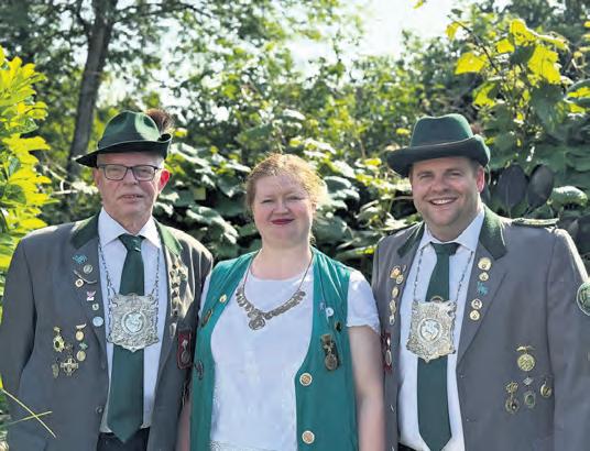 Hauptkönig Reinhard Fechtmann, Damenkönigin Anna-Lena Finke und Vizekönig Hendrik Fechtmann. Foto: pv