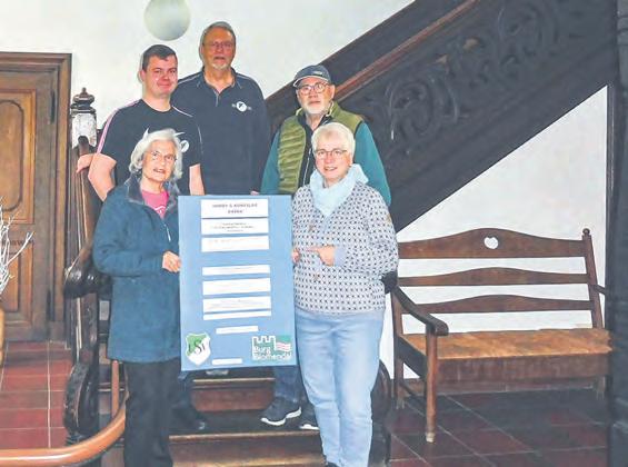 Sie laden zum Benefizbasar ein: vom Vorstand vom Lüssumer Sportverein (LSV) die Übungsleiterin der Krebsnachsorge, Gudrun Steiert, der Erste Vorsitzende Sebastian Schütt und der Zweite Vorsitzender und Organisationsleiter Michael Tietjen sowie die Organisatoren der Veranstaltung Rolf und Regina Bellmann (von links). Foto: fr