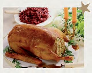 Ihr Weihnachts-Festmenü für vier Personen Schmackhaft vorbereitet und sicher verpackt. Mit Zubereitungsanleitung –servierfertig in nur einer Stunde. Knusprig braune, gefüllte Weihnachtsgans mit Preiselbeersauce gefülltem Bratapfel, Rotkohl, Rosenkohl und Kartoffelklößen
