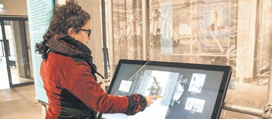 Christel Trouvé erklärt hier die vertiefenden digitalen Themeninseln, die neu zur Ausstellung hinzukommen.