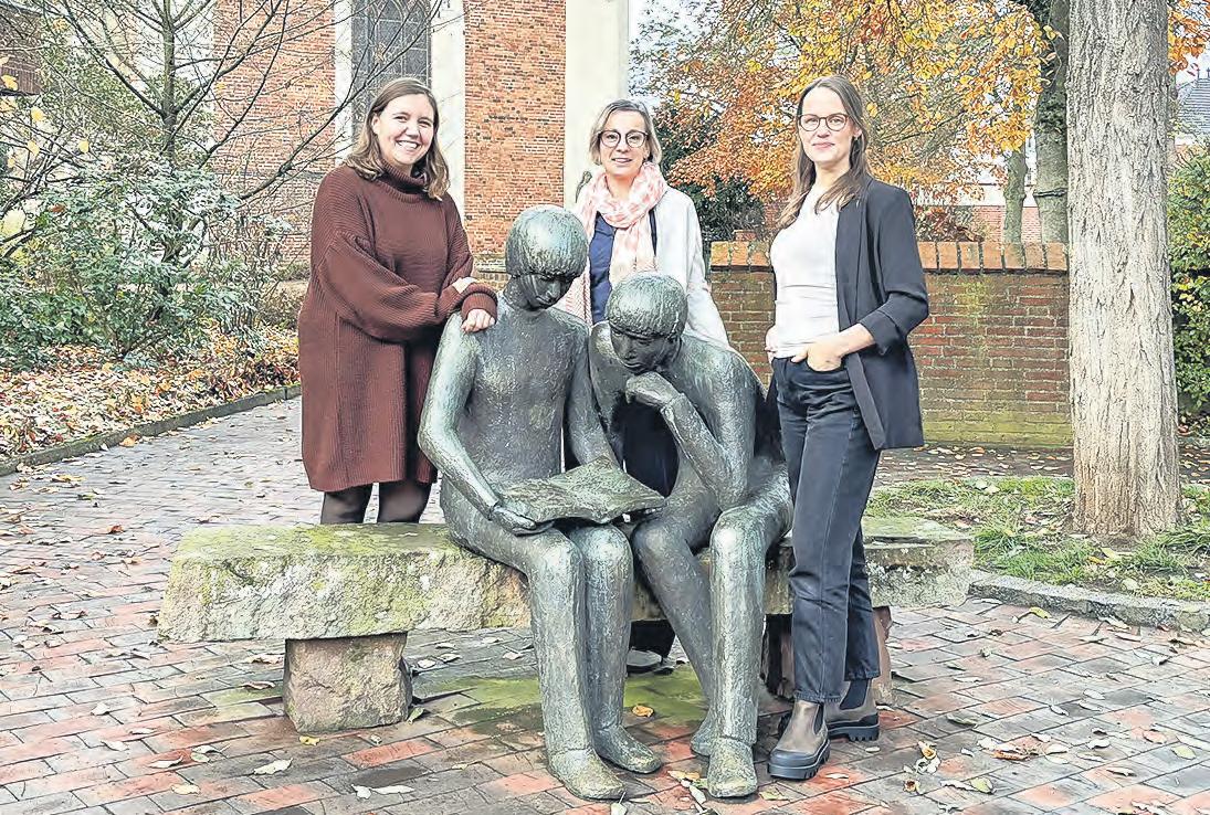 In der Gemeindebücherei stellten Evelin Meyer und Monika Weyers mit Klaus Müller (v. l.) von der VGH Stiftung das Leseförderprogramm „ÜBÜs – Club der ungezähmten Lesewesen“ vor. Foto: Fricke