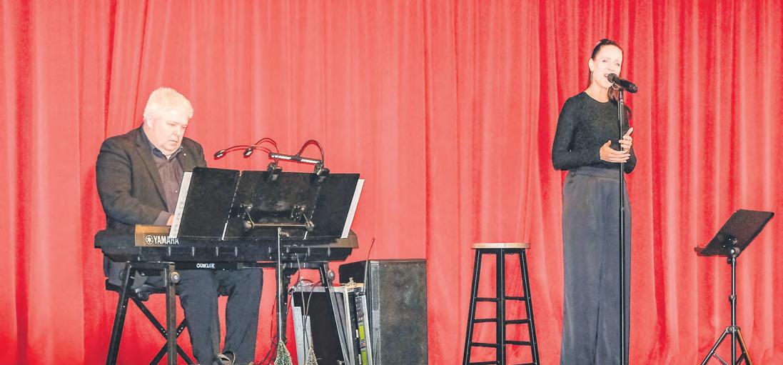kenbergs Dank galt auch den Helfern aus Verwaltung, Seniorenbeirat und Schülern des Gymnasiums Loger Straße. Sie hätten unter anderem die Scheune hergerichtet, die Schüler versorgten die Gäste mit Getränken. Für Begeisterung sorgten dabei Voice Over Piano, Sara Dähn mit Gesang und Thomas Blaeschke am Piano. Die Musical-Spezialisten starteten ihr Programm mit dem FrankSinatra-Song „New York, New