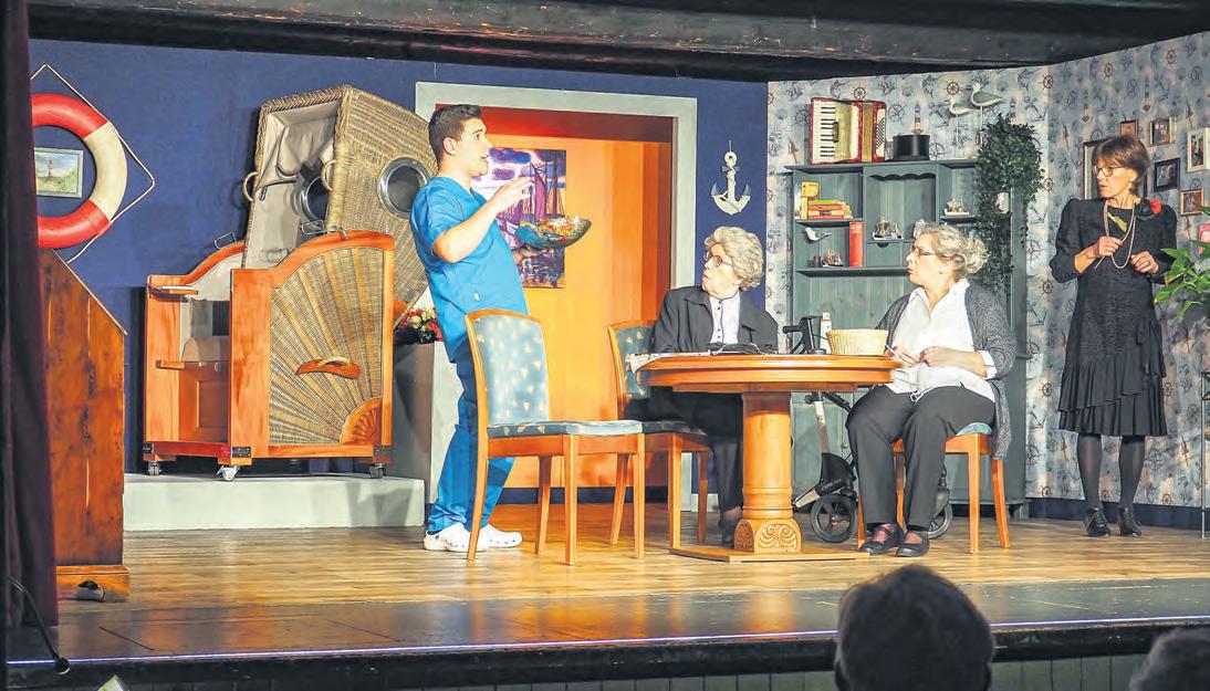 WPfleger Patrick (Timon Finke) muss sich erst noch an den Umgangston mit (von links) Agnes (Edda Hillmann-Quest), Maria (Astrid Koschnitzki) und Fine (Silke Kühtmann) gewöhnen.