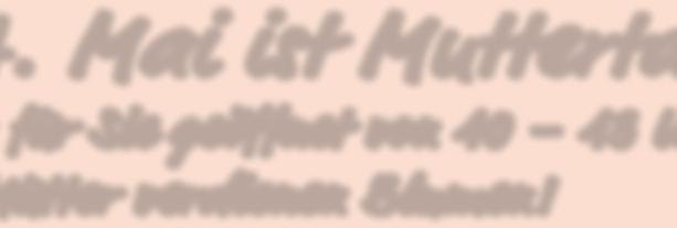 Ihr Floristen Team in Huchting Am 14. Mai ist Muttertag! Wir haben für Sie geöffnet von 10 – 13 Uhr! Mütter verdienen Blumen! Unsere Öffnungszeiten: Mo bis Fr. 8 .00 – 18.00 Uhr • Sa. 8.00 – 16.00 Uhr Lieferservice in alle Stadtteile