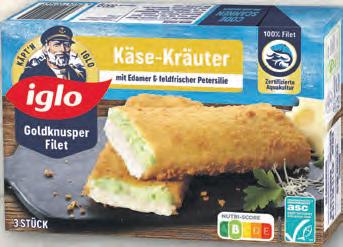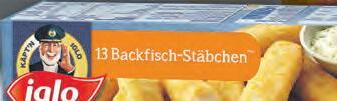 Iglo Fischstäbchen oder Goldknusperfilets versch. Sorten, gefroren, z.B.: Fischstäbchen 450g, Goldknusper Käse/Kräuter oder Goldback 300g, 1kg = 5,53/8,30 Packung