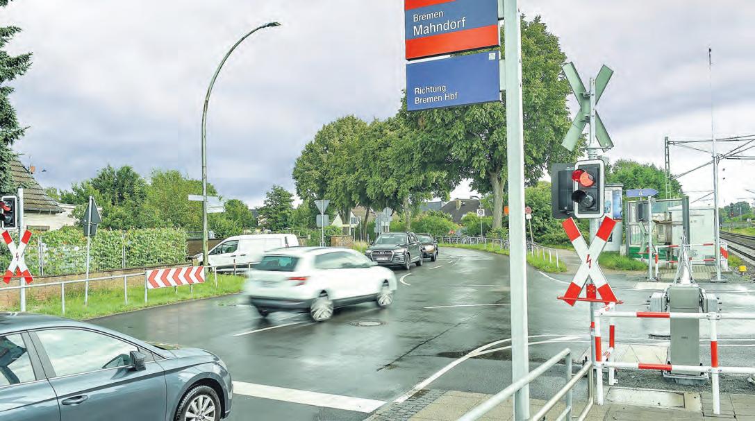 Wenn in Bremen neue Ampeln aufgestellt werden, sorgt das oft für Diskussionen. Werden Fußgänger bevorzugt? Wie lang sind die Wartezeiten? Oder braucht es an dieser Stelle überhaupt eine Verkehrsregelung durch Lichtsignal? Eigentlich sollen sie Klarheit darüber schaffen, wann wer die Straße queren darf – nicht so am Bahnübergang Mahndorf. Dort steht seit dem 19. Juni – nach Bauarbeiten der Deutschen Bahn (DB) – eine neue Ampel, die augenscheinlich ohne erkennbaren Grund die Weiterfahrt verhindert. Wer von der Mahndorfer Landstraße kommt, kann entweder rechts über den Bahnübergang abbiegen oder geradeaus auf die Straße Auf den Conroden fahren. Die Ampel schaltet auf Rot, sobald sich der Bahnübergang schließt – und verbietet dabei offenbar auch