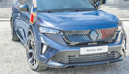 Konnektivität und Privatsphäre vereint. Eine Besonderheit ist die Verwendung von schwarzem Marmor mit weißen Adern aus den Pyrenäen. Er ist präzise um die hintere Mittelkonsole, auf dem Armaturenbrett und auf dem mittleren Teil des Lenkrads platziert und verleiht dem Innenraum ein elegantes mineralisches Finish. Die Basis für die Sonderanfertigung bildet der Renault Rafale Hyper Hybrid E-Tech 4x4 mit 300 PS.
