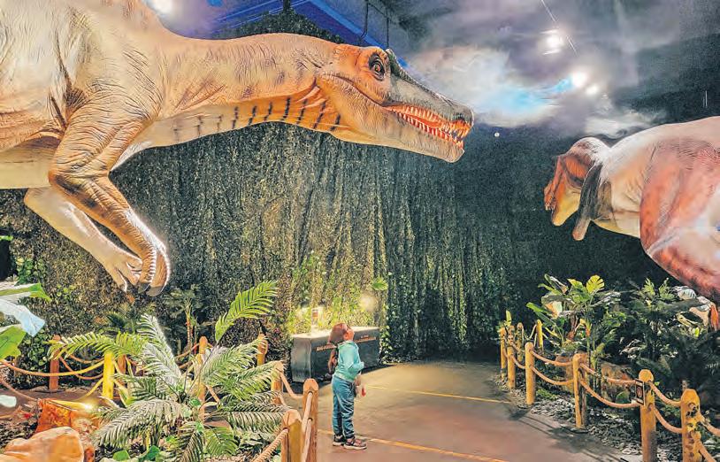 Klein trifft gigantisch: Besonders ehrfürchtig bestaunt Kyra den Spinosaurus. Fotos: Stache
