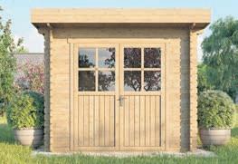 Bausatz aus Nadelholz unbehandelt, Sockelmaß: ca. 209 x 213 cm, 19 mm Wandstärke, inkl. Doppeltür mit Schloss aus Sicherheitsüberfalle und benötigtem Montagezubehör, ohne Fußboden, ohne Dachpappe