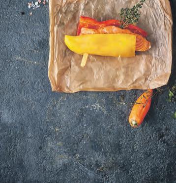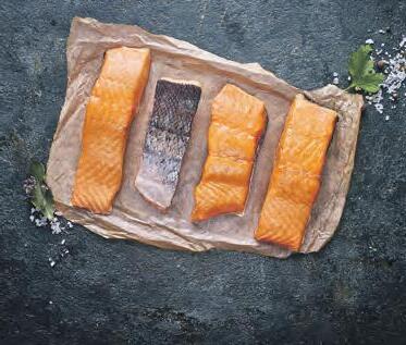 Lachsfilet Spitzpaprika frische Lachsfiletportionen, praktisch grätenfrei und ohne Haut, mit pikanter TomatenMarinade in gelber und roter Spitzpaprika, gespießt und mit einem Thymianzweig garniert 1kg = 29,90 100g