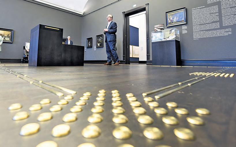 Zwei Jahre hat es gedauert, bis das Projekt „Brückenschläge“ vollendet wurde. Jetzt gibt es in vielen Räumen ein Bodenleitsystem, Tastmodelle, sowie Video- und Audioguides für verschiedenste Ansprüche. Das sogenannte taktile Bodenleitsystem besteht beispielsweise aus Messingknöpfen und -leisten, die sich nicht nur optisch gut in die Architektur des Hauses einpassen, sondern Sehbehinderten eine selbstständige Orientierung im Museum ermöglichen –nicht in allen Räumen, aber immerhin auf drei Etagen, in sieben Ausstellungsräumen